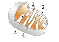 - Mitochondrie je zdrojem velké většiny buněčného ATP a představuje tak základní zdroj energie eukaryotické buňky. V mitochondriích probíhá oxidativní fosforylace – velmi efektivní způsob získávání energie štěpením cukrů až na oxid uhličitý a vodu. Vnitřní membrána je místem vlastní oxidace a je všelijak zprohýbaná v kristy a tvoří tak oddělené prostory (kompartmenty) pro různé chemické reakce a zároveň tím zvětšuje svou reakční plochu. Vnitřní prostor se nazývá matrix.