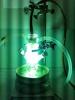 Reaktanty fotochemických reakcí mohou být plynné i kapalné.[10] Zpravidla se reagující látky musí dostat do blízkosti zdroje světla, aby bylo dosaženo nejvyšší možné světelné účinnosti. Reakční směs tak může být ozářena buď přímo, nebo ze strany reaktoru.[11]