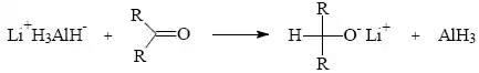 3) Adice hydridového iontu, obvykle z komplexního hydridu, na polární násobné vazby např. C=O, COOR, C=N