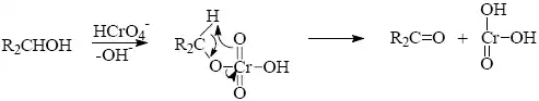 2) Dvouelektronová oxidace iontem kovu schopným dvouelektronové redukce obvykle probíhá přes stádium intermediátu, např. oxidace alkoholu na karbonylové sloučeniny.