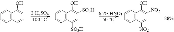 Při nitraci fenolů do vyšších stupňů je třeba eliminovat nežádoucí oxidační působení nitrační směsi. Fenol se proto nejprve sulfonuje koncentrovanou kyselinou sírovou a pak teprve následuje nitrace.