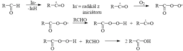 3) Odstraňování atomu vodíku na aktivovaném místě molekuly např. radikálová řetězová autooxidace aldehydů.