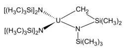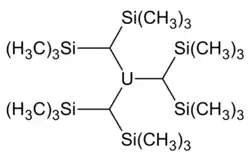 V roce 1989 se podařilo vytvořit homoleptický komplex obsahující trimethylsilylové skupiny: U[CH(SiMe3)2]3. Později byly připraveny i obdobné sloučeniny s vyššími koordinačními čísly, jako například [Li(TMEDA)]2[UMe6].[1]