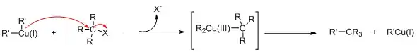 - R2CuLi + R'X → R-R' + CuR + LiX