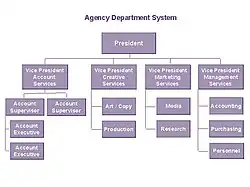 Organizační schéma je diagram, který graficky znázorňuje vztah jednoho pracovníka k druhému nebo dalším pracovníkům společnosti. Používá se také k zobrazení vztahu jednoho oddělení k jinému nebo jiným nebo jedné funkce organizace k jiné nebo jiným. Tento diagram je cenný tím, že umožňuje představit si celou organizaci, a to prostřednictvím obrazu, který ji znázorňuje.[3]