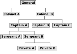Příkladem „bočního vztahu“ v tomto schématu by byl vztah mezi „kapitánem A“ a „kapitánem B“, kteří oba pracují na úrovni a oba jsou podřízeni „plukovníkovi B“.