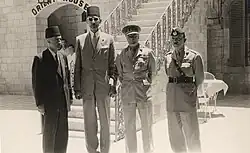Omar Elwary (vlevo) a tři další úředníci před Orient House. Omar Elwary byl v 50. letech starostou východního Jeruzaléma.