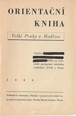 Orientační kniha Velké Prahy a Modřan je plán Prahy v knižní podobě. Byl iniciován Masarykovým četnickým vzdělávacím a podpůrným fondem. Stalo se tak na základě výnosu ministerstva vnitra číslo 30.965/1947-III/2 ze dne 15. ledna 1948. Během procesu vydávání byla tato instituce začleněna do Stráže Národní Bezpečnosti[p 1] Publikace v kapesním formátu (8°, přibližně 100 x 150 mm) obsahuje jednu přehlednou mapu kladu mapových listů a 69 mapových listů. Plánky vypracoval a vytiskl Vojenský zeměpisný ústav. Jsou dílem npor. J. Bělohlávka, por. M. Vodrážky, J. Vaška, J. Musílka, J. Žaldánka, Ant. Mlátka a J. Kallové, kteří je vytvořili většinou jako práci přes čas. Dále jsou součástí publikace rejstříky (celkem 440 stran). Textová část byla vytištěna v Mladé Frontě v Praze.
