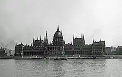 ![]() Országház – sídlo Maďarského parlamentu, pohled přes Dunaj z nábřeží | |