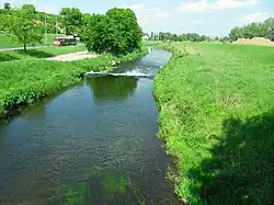 Památkově chráněný kanál Kanał Raduni a památkově chráněný kostel kościół św. Ignacego Loyoli (Stare Szkoty).