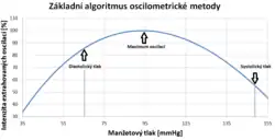 Metoda je založena na měření amplitudy změn tlaku v natlakované manžetě.