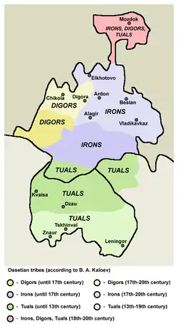 Oseti jsou potomci Alanů, kterým Gruzínci říkali Osebi (z toho název Oseti). Počátkem našeho letopočtu začali pomalu asimilovat původní obyvatelstvo severního Kavkazu. Od 6. století k nim proniklo křesťanství z Gruzie. Od 9. století se začala formovat osetská národnost na základě politického sjednocení. Ve 13. století tatarské vpády vytlačily Osety z úrodných úpatí hor severního Kavkazu do vysokohorských oblastí. Od 14. století začali pronikat na jižní stranu Kavkazu do Gruzie. V 16. století Oseti upadli do závislosti na kabardských feudálech. V rámci společné křesťanské víry začali hledat útočiště u Rusů a po rusko-turecké válce v roce 1774 se stali součástí Ruska.