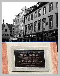 - V polovině třicátých let 20. století Tábor uctil památku svého rodáka Oskara Nedbala a jeho otce Karla Nedbala zasazením pamětní desky na rodném domě v Palackého ulici.