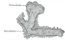 Osteoblasty a osteoklasty na nákresu z Gray's Anatomy