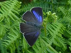 - ↑ Purple Hairstreak [online]. Natural History Society of Northumbria. [cit. 2024-06-10]. Dostupné online. (anglicky)