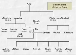 | Potomci | Aldfrith, Alhfrith (Deira), Ælfwine, Ecgfrith Northumbrijský, Ælfflæd z Whitby, Osthryth a Alhflæd |
