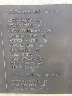 - ↑ LIDICE Třicetpět dnů poprav na Kobyliské střelnici v Praze VIII. www.lidice.cz [online]. [cit. 2019-11-10]. Dostupné online.