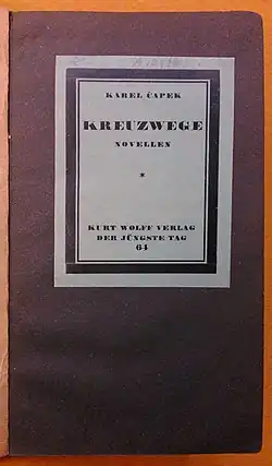 - ↑ ČAPEK, Karel. Kreuzwege. Leipzig: Wolff 34 s. (Der Jüngste Tag). Dostupné online.