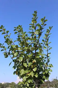 Roste bujně, později slabě. Tvoří široce kulovitou korunu.[1]
