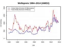 - ↑ a b Wool Statistics 2014/15 [online]. British Wool Marketing Board, 2015 [cit. 2017-01-21]. Dostupné v archivu pořízeném dne 2017-02-02. (anglicky)