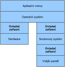 - řízení hardware prostřednictvím mezivrstvy firmware (např. BIOS)