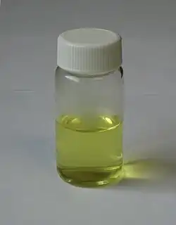 - reakcí s roztokem chloru, resp. s roztokem kyseliny chlorné, která vzniká spolu s kyselinou chlorovodíkovou po rozpuštění chloru ve vodě