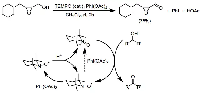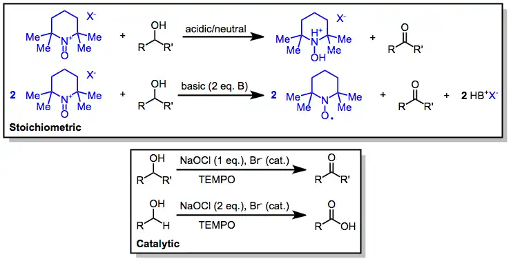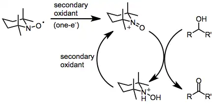 Jednoelektronovou oxidací nitroxidu vznikne silně elektrofilní oxoamonná sůl, která je aktivním oxidačním činidlem.[2] Nitroxid může sloužit jako katalyzátor ve spojení s levnějšími stechiometrickými oxidačními činidly, jako je například chlornan sodný[3] nebo bis(acetoxy)jodbenzen (BAIB).[4]