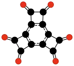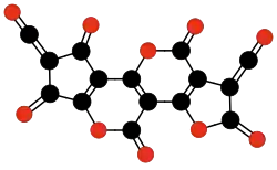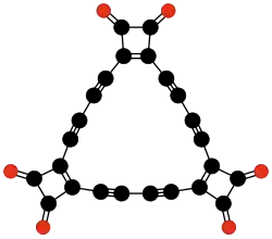- C24O6, cyklický trimer biradikálu 3,4-dialkynyl-3-cyklobuten-1,2-dionu -C≡C-(C4O2)-C≡C-;[45]