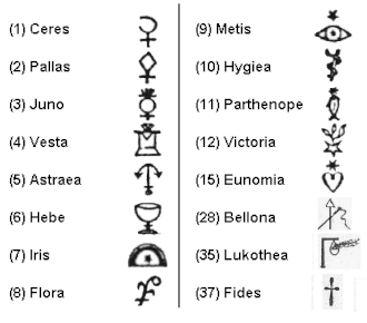 Původně se planetkám přiřazovaly grafické symboly, podobně jako mají své jednoduché grafické symboly historicky i planety a Slunce s Měsícem, zvláště, když se zpočátku soudilo, že nově objevená tělesa jsou další planety Sluneční soustavy. Protože však se symboly stávaly čím dál složitější a vyžadovaly od uživatelů jisté kreslířské dovednosti, které ne každý měl, a rychle přibývající počet planetek v 50. létech 19. stol. jednak planety sesadil z pozice planet, navrhl v roce 1851 německý astronom Johann Franz Encke v jím vydané astronomické ročence na rok 1854 (Berliner Astronomisches Jahrbuch für Jahr 1854) nahradit tyto symboly číslem v kroužku. Tehdy rozhodl ponechat původní grafický symbol prvním čtyřem planetkám (Ceres, Pallas, Juno a Vesta) a páté objevené planetce Astraea přidělil symbol ① (číslo jedna v kroužku). Prozatím tedy ponechal čtyřem prvním planetkám výjimečný status (to se projevilo i tím, že v uvedené ročence jejich efemeridy byly zařazeny mezi planety, zatímco pro ostatní tělesa počínaje Astraeou a konče Eunomií, byly zařazeny až na konec ročenky). O rok později, 1852, doporučil americký astronom B. A. Gould, aby tímto způsobem byly označeny všechny planetky. Číslo v kroužku mělo být přiřazováno v posloupnosti, odpovídající chronologickému pořadí jejich objevu. V souladu s tímto návrhem Encke již v dalším vydání astronomické ročenky na rok 1855 planetce Astraea přidělil číslo 5 v kroužku, tedy symbol ⑤, ale stále ještě ponechal prvním čtyřem grafický symbol. Teprve v ročence na rok 1867 (vydané v roce 1864) byly první čtyři planetky již uváděny s čísly, odpovídajícími pořadí jejich objevu.