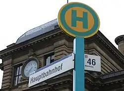 Typické označení zastávky v německojazyčných zemích. Frankfurt nad Mohanem, Německo.