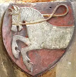 V červeném štítu se nachází polovina stříbrného koně. Ke vzniku erbu se váže pověst spojená s dobýváním Milána. Česká vojska Vladislava II. pomáhala Fridrichu I. Barbarossovi dobýt Milán, jako první měl údajně za hradby proniknout prapředek rodu jménem Ješek, když se vracel s kořistí, spustili obránci města v bráně mříž, která přesekla koně v půli. Předkovi se podařilo vrátit zpět, na památku tohoto činu obdržel do erbu onu polovici koně.