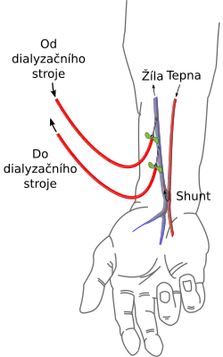 Příkladem úmyslně vytvořené píštěle je umělé propojení tepny a žíly pro usnadnění hemodialýzy u osoby s chronickým selháváním ledvin.