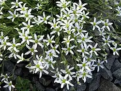 ![]() Hustý zápoj písečnice horské (Arenaria montana) | |
