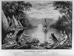 Poznámka: Veškeré citace (většinou parafráze vzhledem k syntaktické struktuře věty hesla) a jména pochází z překladu J. V. Sládka ve verzi z roku 1909, s výjimkou jména samotného Hiawathy, které má Sládek v podobě Hiawata. V tomto případě byla použita druhá varianta jména (Hiawatha), která je užita ve zbytku hesla.