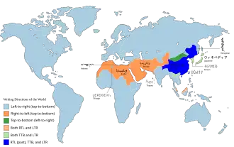 Klínové, egyptské i čínské písmo bylo původně psáno ve svislých sloupcích. Podle historických záznamů se v Číně používalo starší uzlové písmo.[9] Jihoamerické písmo kipu je záznamem uzlů na svislých šňůrkách, nejstarší je 5000 let staré.[10]