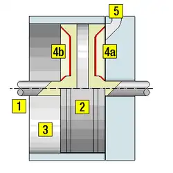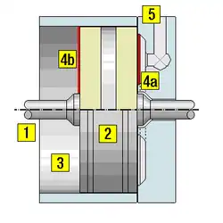Všechny dále uvedené konstrukce mají společné následující díly: [1] – pístní tyč, [2] – píst, [3] – válec, [4] – pracovní plocha pístu, [5] – přívod/odvod páry.