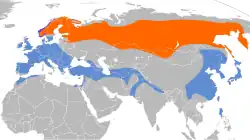 Eurasie, severozápadní Afrika |