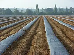 Jako startovací hnojivo byl použit ledek amonný ve výši 40 liber/akr. Hnojivo bylo zapracováno 4 palce hluboko do vrcholu záhonu. Poté byly záhony chemicky ošetřeny a ihned pokryty mulčem, černým vysokohustotním polyetylenem. Současně byla do středu záhonu zapuštěna hadice s kapkovou závlahou.[10]