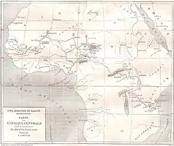 Pět neděl v baloně, mapa cesty balonu Viktorie z francouzského vydání románu.