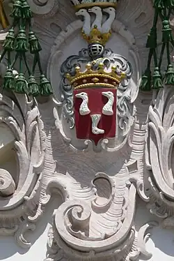 V erbu nosili tři spojené labutí (husí) krky v bílé barvě se zlatými zobáky na červeném podkladu.