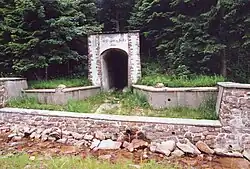 - 55 – Štola Tiefer-Hilfe-Gottes byla ražena v letech 1801-68. Jakožto nejhlubší štola revíru odvodňovala jámy ležící pod štolou Tiefen-Bünau (zastavení 57).