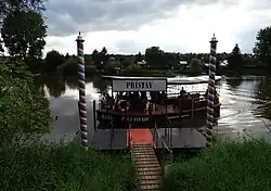 - Přívoz Horní Černošice – Dolní Černošice: koncesi k provozování přívozu nad mlýnským jezem udělilo místodržitelství obci Dolní Černošice 16. září 1895,[7] provoz poprvé doložen 1899, naposledy 1950.[4] (Nahrazen lávkou.) Původním vlastníkem a provozovatelem černošického přívozu byl velkostatek zbraslavský; prvním nájemcem (v letech 1896–1924) a převozníkem byl František Cvrk z Horních Černošic. Po něm následovali převoznící Václav Ejem z Radotína a František Jiskra z Dolních Černošic. V roce 1933 zápis v obecní kronice konstatuje, že výnosy z přívozu se snížily, protože lázně a koupaliště se přesunuly ke Kazínu.[7]