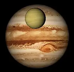 Termín lze také použít k popisu pohybu měsíce přes disk jeho mateřské planety. Často lze ze Země pozorovat například přechody Galileovských měsíců (Io, Europa, Ganymed a Callisto) přes Jupiter.