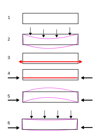 V zabudovaném a tedy i zatíženém prvku součtem ohybového normálového napětí a ohybového a tlakového napětí od předpětí vzniká
