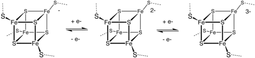 Přenosy elektronů ve vnější sféře tvoří základ biologických funkcí FeS proteinů. Fe centra jsou obvykle koordinována na další přes cysteinylové ligandy. [Fe4S4] transferní proteiny ([Fe4S4] ferredoxiny) lze dále rozdělit na nízkopotenciálové (bakteriálního type) a vysokopotenciálové (HiPIP) ferredoxiny. Vztah mezi nízko- a vysokopotenciálovými ferredoxiny odpovídá následujícímu redoxnímu schématu: