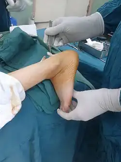 Po operaci musí být noha šest až osm týdnů imobilizována.[4][2] Používá se sádrová fixace nebo plastová ortéza.[2] Podle studie z roku 2007 přináší ortéza zkrácení doby léčby průměrně o dva týdny.[7] Pacient se smí pohybovat pouze o berlích bez došlapování na operovanou končetinu.[4] Po dobu hojení se je třeba užívat antikoagulancia.[4]