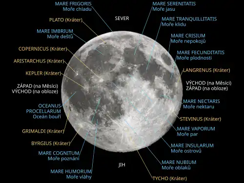 - ↑ Antonín Rükl: Atlas Měsíce, Aventinum (Praha 1991), kapitola Mapa celého Měsíce, str. 190, ISBN 80-85277-10-7