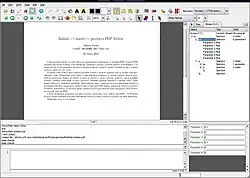 Uživatelské rozhraní editoru pro Unix-like systémy je založeno na Qt 3 toolkitu a skriptovací knihovně (QSA), takže každá operace jde skriptovat. Součástí editoru je i interface z příkazové řádky na manipulaci s PDF. Uživatelské rozhraní editoru pro Windows systémy je založeno na Qt 4 toolkitu přebrané z Bc. práce Evy Peškové vedenou J. Mišutkom. Pro manipulaci s PDF objekty se používá knihovna Xpdf.