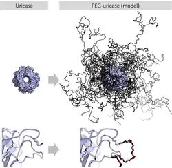 - ↑ M. R. Sherman; M. G. Saifer; F. Perez-Ruiz. PEG-uricase in the management of treatment-resistant gout and hyperuricemia. Advanced Drug Delivery Reviews. 2008-03-01, s. 59–68. PMID 17826865.