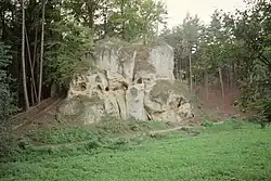 Východně od hradu, na druhé straně údolí, se nachází místo možného obléhacího tábora. Jeho existence není jistá, ale prostor, částečně poničený rekreačními objekty, je obehnán příkopem a vnějším valem.[8]